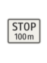 Dodatková tabuľka umiestnená pod značkou Daj prednosť v jazde! vyznačuje vzdialenosť k značke Stoj, daj prednosť v jazde! .