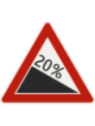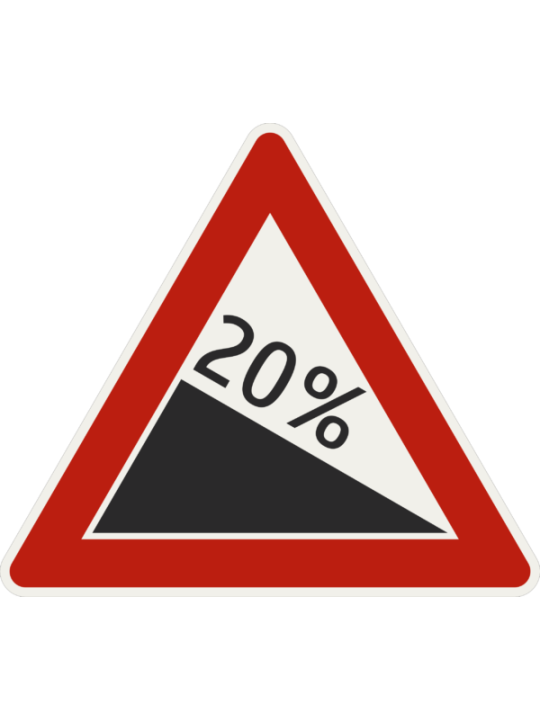 Značka upozorňuje na nebezpečné klesanie. Značka je dostupná v 3 veľkostiach a to: Veľkosť 1- 630mm (zmenšená) Veľkosť 2- 900mm (základná) Veľkosť 3- 1260mm (zväčšená)