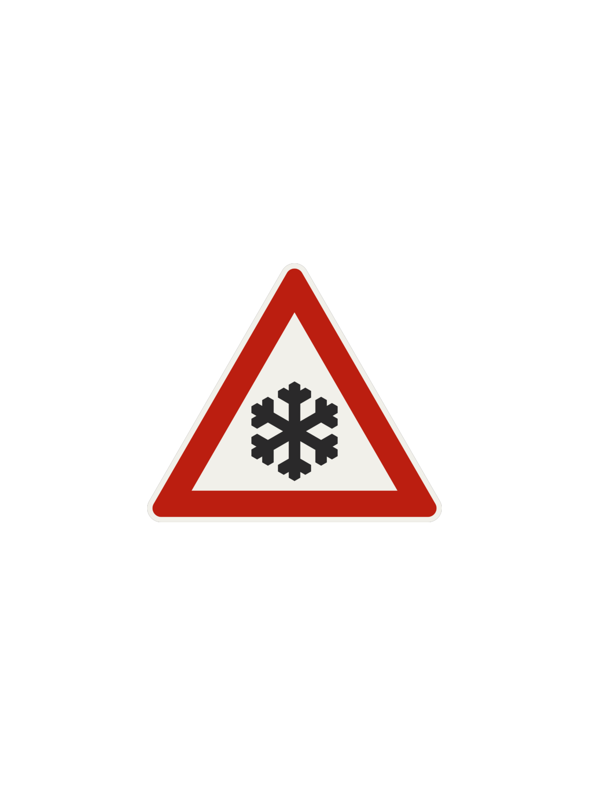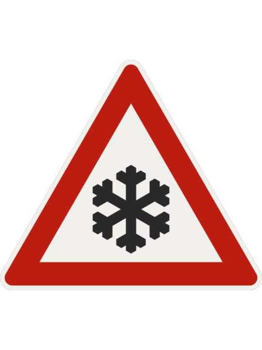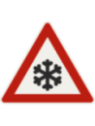 Značka upozorňuje na ujazdený alebo zľadovatený sneh alebo na poľadovicu. Značka je dostupná v 3 veľkostiach a to: Veľkosť 1- 630mm (zmenšená) Veľkosť 2- 900mm (základná) Veľkosť 3- 1260mm (zväčšená)